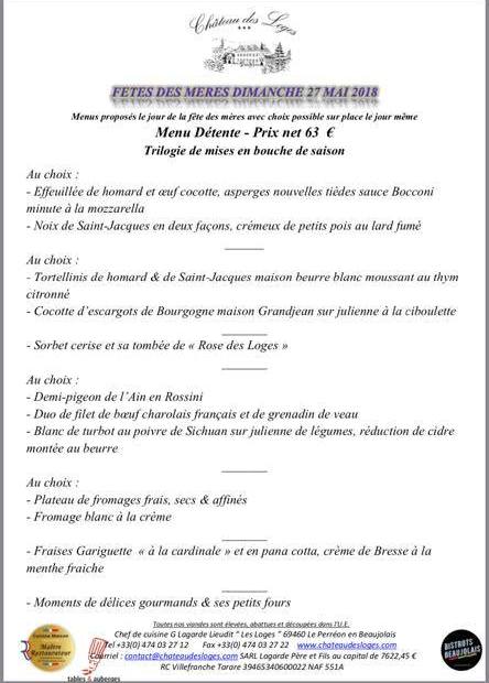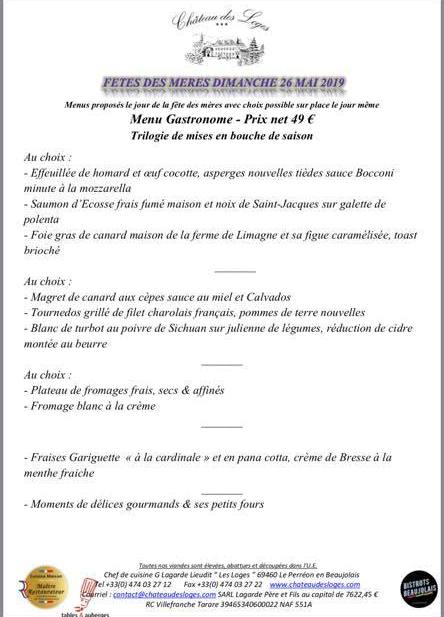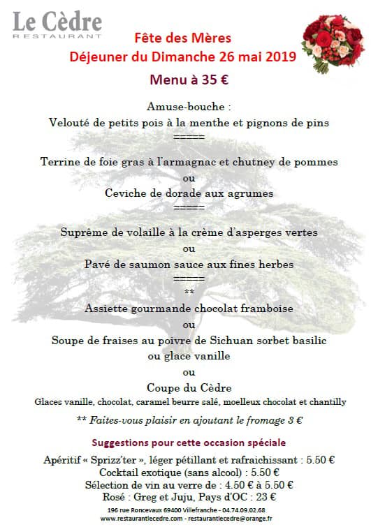 - Menu fête des Mères - Le cèdre à Villefranche sur Saône