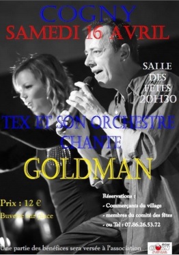 Une belle soirée Concert à la salle des fêtes de Cogny le 16/04/2016 à 20:30 : "LIVE TRIBUTE GOLDMAN" au profit de Docteur Clown.