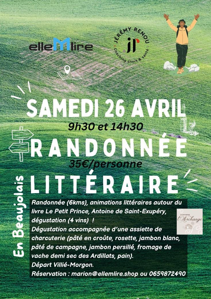 Le samedi 26 avril 2025 de 9h30 et 14h30, Elle M lire organise une randonnée Littéraire dans le Beaujolais ... À la rencontre du Petit Prince. Départ de Villié-Morgon.