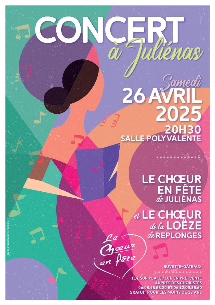 - 26/04/2025 : Concert à 20h30 à la salle polyvalente de Juliénas avec le choeur de la Loeze de Replonges. Paf 11€ sur place. Gratuit moins de 12 ans. Tél. 06.08.48.88.20. Mail annie.adoir chez gmail.com