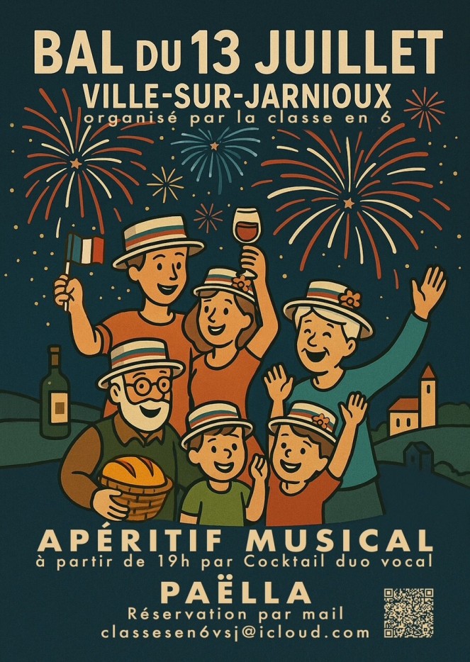 - La classe en 6 organise les festivités de la fête nationale 2025. RDV le dimanche 13 juillet 2025 à -13h30 au stade bouliste des Gondoins pour les concours de pétanque et de lyonnaise. 19h à la salle de fêtes pour un repas champêtre. 22h pour le feu d’artifice.