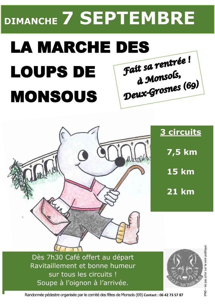Le comité des fêtes de Monsols organise la marche des loups de Monsols le dimanche 7 septembre 2025 de 7h30 à 14h. Rendez-vous à la Salle des fêtes de Fontalet. Café offert au départ.