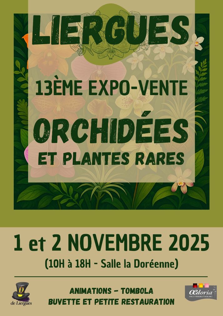 La Commune de Liergues (Rhône) accueillera les 1er et 2 novembre 2025 sa treizième Expo-vente d’Orchidées à sa salle des fêtes « La Doréenne » de 10 h à 18 h.
