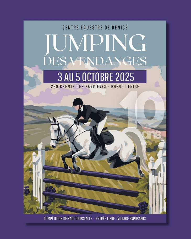 L’édition 2025 du Jumping national du Beaujolais, concours équestres N° 202569023 organisé par le Centre Equestre de Denicé a lieu du 3 octobre 2025 au 5 octobre 2025. Entrée libre pour le public à partir de 8h. Venez nombreux voir ces superbes couples sauter les obstacles. Epreuve nocturne le samedi soir. Clôture des engagements le 30 septembre 2025.